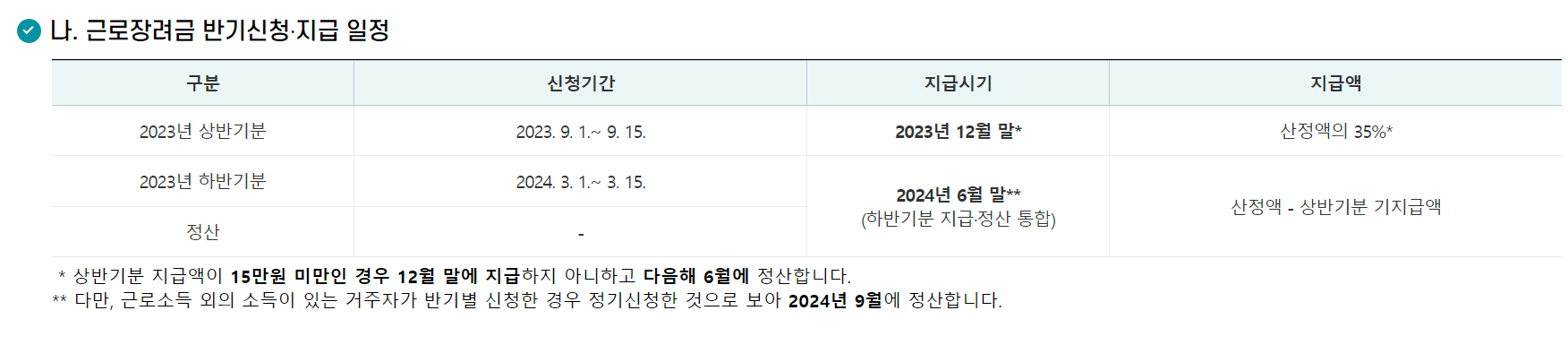 반기신청= 2023년 신청자와 배우자가 근로소득만 있는 거주자에 한함