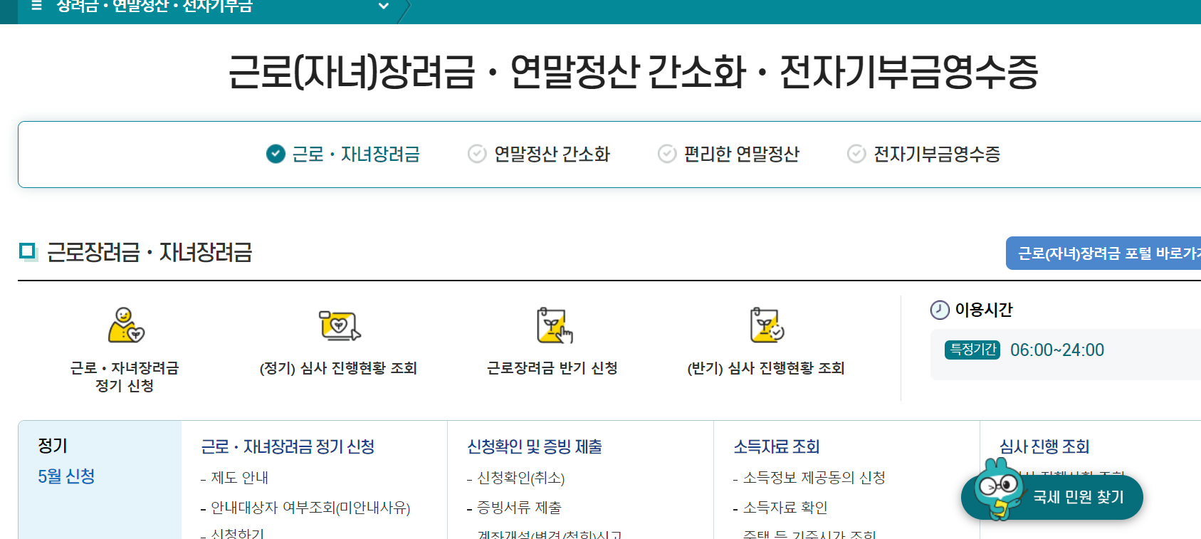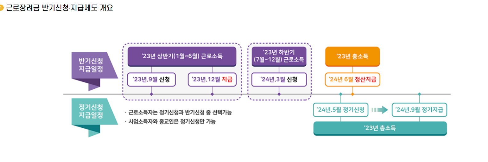| 정기신청 | 근로·사업·종교인소득자 | 23년 연간 소득 | '24.5.1~31 | |