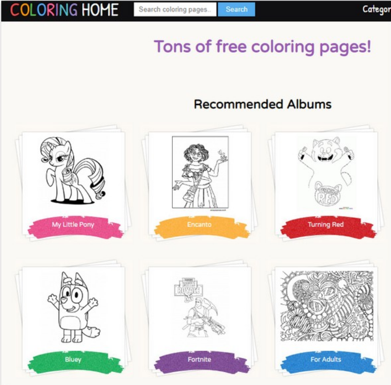- 컬러링홈: 해외 사이트로, 난이도별로 다양한 색칠 도안을 제공합니다. 원하는 이미지를 검색하여 사용할 수 있습니다.