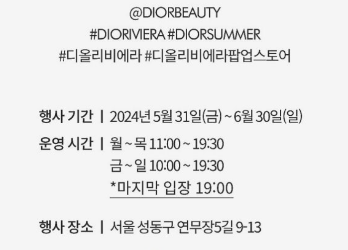 성수 디올 디올리비에라 팝업스토어 사전예약 안내