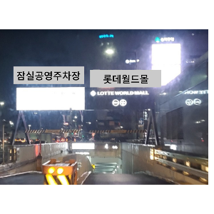 주말에 롯데몰 주차장에 들어가기 어려운 분들을 위한 꿀팁이에요! 롯데월드타워와 석촌호수 사이 터널을 통해 에비뉴엘 주차장 입구로 들어가는 방법이랍니다. 평일이나 주말 상관없이 항상 한적하다고 해요. 특히 석촌호수 벚꽃축제 기간에도 이 길은 한산하다고 하니 참고하시면 좋을 것 같아요!