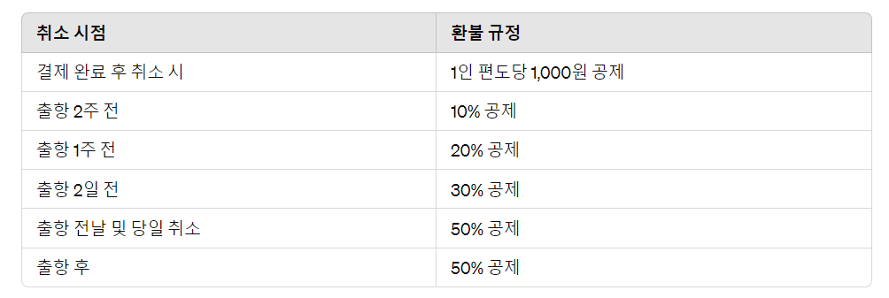 배편 예약 후 피치 못할 사정으로 취소해야 하는 경우도 있을 수 있습니다. 출항 이후에도 일부 환불이 가능하니 예약한 배편의 환불 규정을 확인하고 환불을 받으세요.