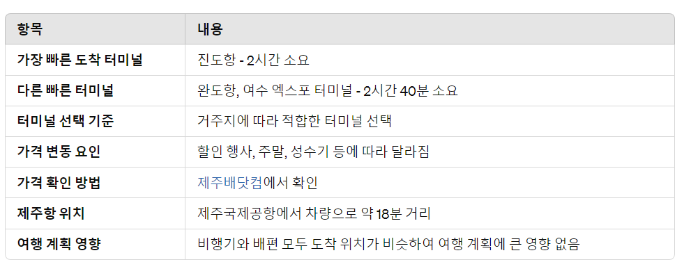 제주도 여행을 배편으로 가보신 적 있으신가요? 비행기를 타는 것보다는 시간이 더 걸리지만, 독특한 경험을 할 수 있고 차량을 함께 가져갈 수 있어 렌터카 비용을 절감할 수 있습니다.