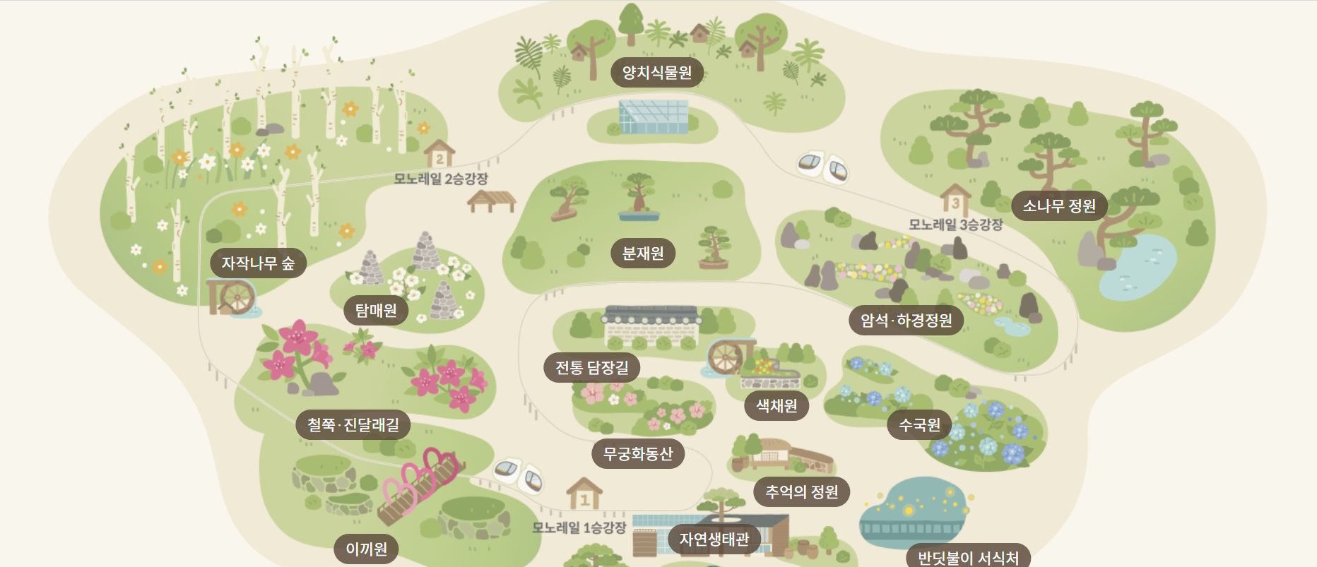 - 이야기가 있는 숲: 화담숲의 계절별 다양한 꽃과 나무들의 이야기를 듣는 힐링 테마 숲 해설 프로그램입니다.