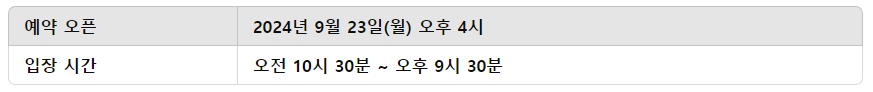 - 예약 오픈일: 2024년 9월 23일(월) 오후 4시