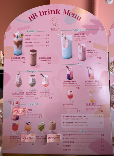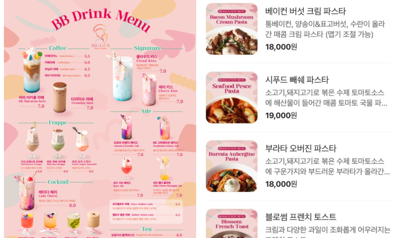- 음료: 다양한 종류의 음료, '클라우드 키스'와 '체리 키스' 등 시그니처 메뉴 제공